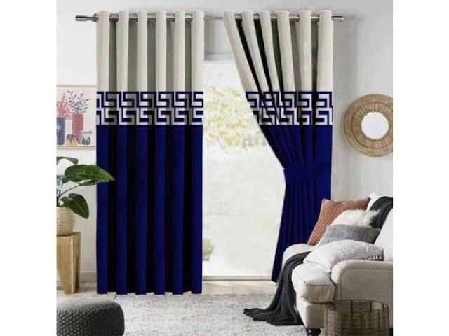 Add a refined and stylish look to your home with this Luxury Blue & Beige Geometric Blackout Curtain Set. Designed with a sophisticated two-tone color combination, these curtains feature a rich deep blue lower panel paired with a soft beige upper section, finished with a modern Greek key geometric pattern that enhances the overall elegance of your windows.
